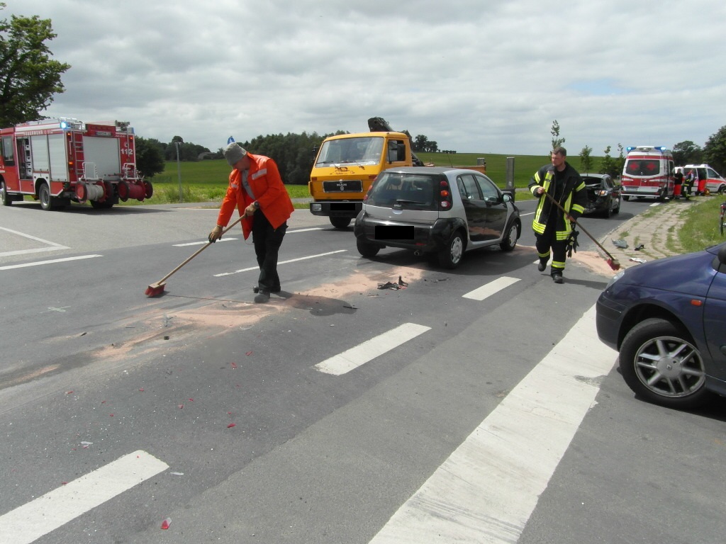 Am 06.10.2014 wurden wir zur Mittagszeit zu einem Einsatz alarmiert. Stichwort war VKU mit mehreren verletzten Personen. Nach nur wenigen Minuten erreichten wir den Einsatzort in Weitendorf. Bei unserem Eintreffen, waren bereits alle Personen aus den Fahrzeugen geholt, bzw. abtransportiert. Nach einer guten Stunde, konnten wir uns am Standort Einsatzbereit zurück melden.