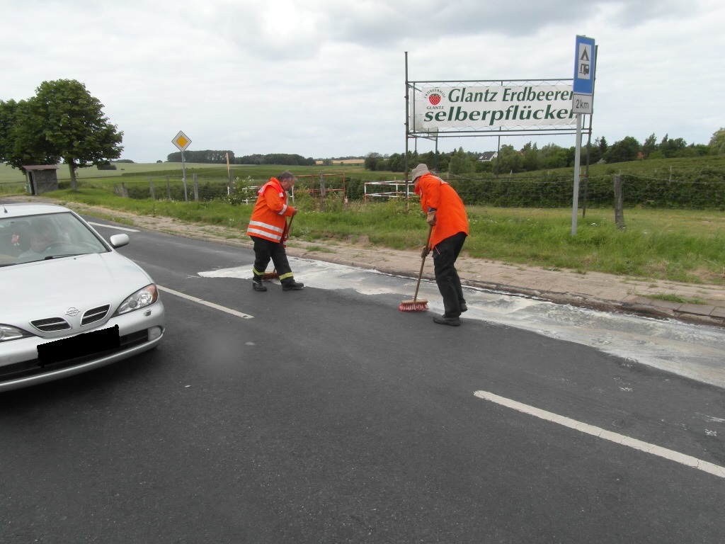 Am 20.06.2014 wurden wir um 13:45 Uhr zu einem Einsatz alarmiert. Nach einem Verkehrsunfall auf der Kreuzung in Gramkow, liefen Betriebsstoffe aus den Fahrzeugen aus. Wir streuten Bindemittel auf die Straße und säuberten die Straße. Gegen 15:00 Uhr waren wir wieder Einsatzbereit zurück am Gerätehaus.