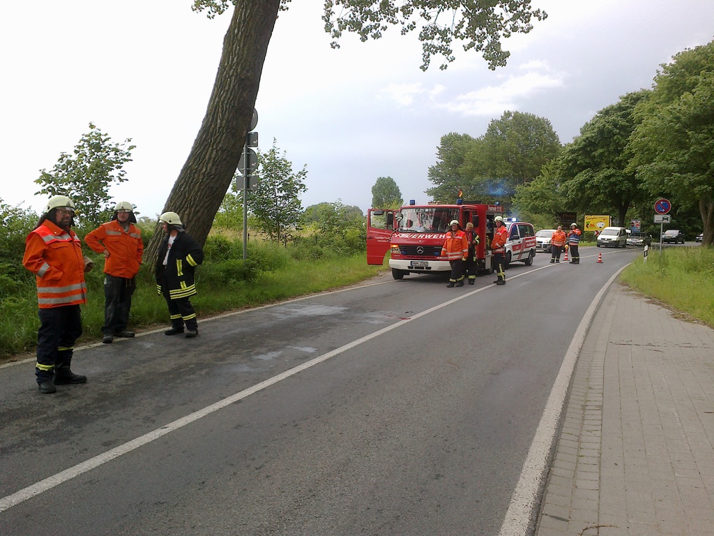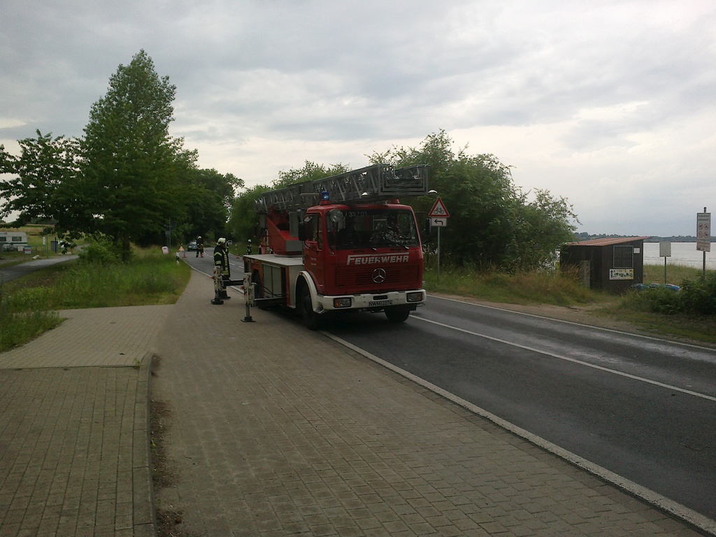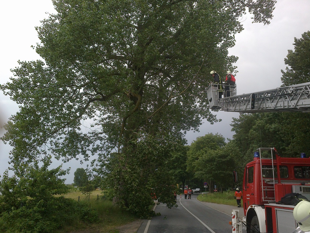 Am 28.06.2014 wurden wir um 15:17 Uhr zu einem Einsatz mit Sturmschaden alarmiert. Auf der L01 in Richtung Klütz, hing nach einem Sturm, ein großer Ast in Richtung Fahrbahn und drohte abzubrechen. Um den Ast abnehmen zu können, forderten wir die Kameraden aus Klütz, mit ihrer Drehleiter, nach. Um ca. 16:30 Uhr waren wir wieder einsatzbereit am Standort zurück.