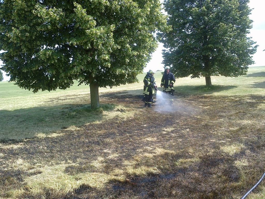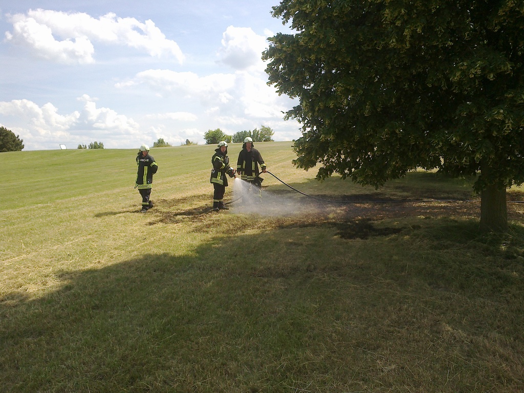 Am 27.06.2014 wurden wir um 14:50 Uhr zu einem Einsatz alarmiert. Auf dem Golfplatz in Hohen Wieschendorf, kam es zu einem kleinen Flächenbrand. Dieser war bei unserem eintreffen bereits gelöscht. Wir löschten die etwa 20m² große Fläche mit Hilfe unserer Schnellangriffseinrichtung nochmals ab. Nach einer knappen halben Stunde, war der Einsatz für uns beendet.