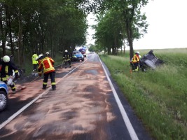 Am Ortseingang Gägelow Richtung Klein Wolterstorf war ein PKW mit einem LKW kollidiert wobei der Fahrzeugführer des PKW‘s eingeklemmt