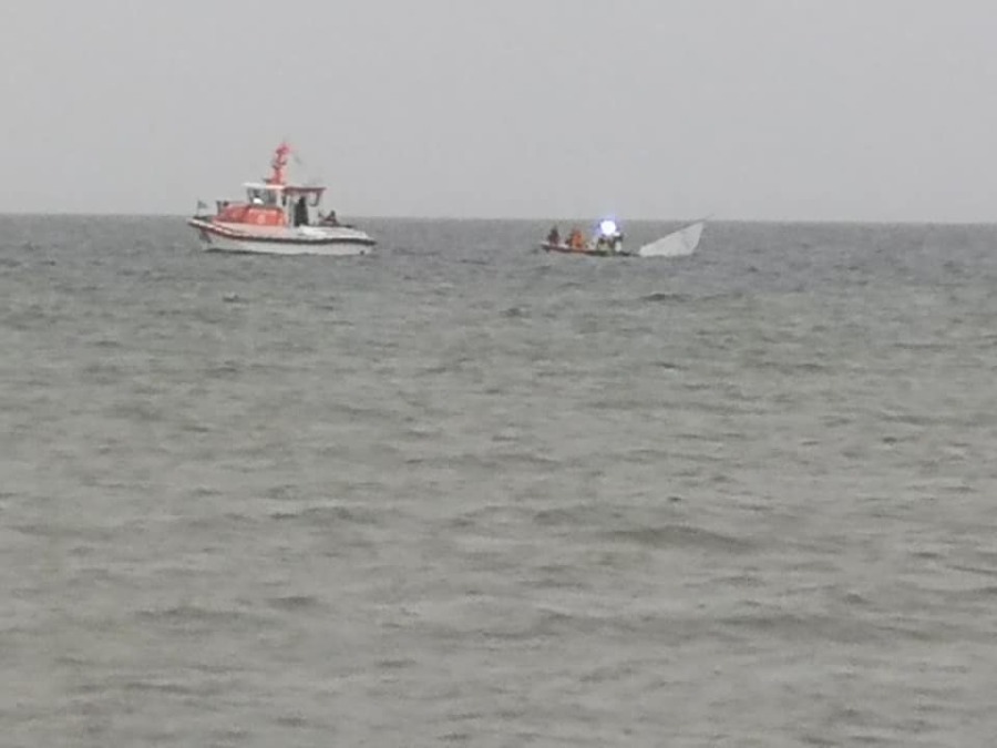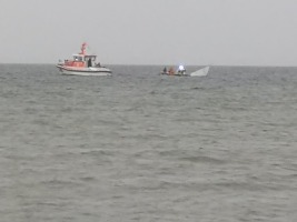 Segelboot in der Wohlenberger Wiek, höhe Campingplatz Beckerwitz alarmiert. Durch unser Rettungsboot wurden zwei Personen aus dem Wasser gerettet und an den Rettungsdienst übergeben.