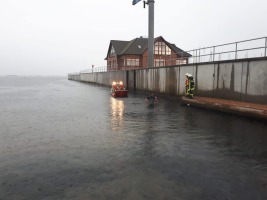 Noch während sich unser Boot auf dem Rückweg befand, wurden wir zu einem zweiten Einsatz alarmiert. In der Wismarer Bucht, südlich der Insel Walfisch war ebenfalls ein Segelboot gekentert, auch hier befanden sich zwei Personen im Wasser. Dieser Einsatz wurde durch die Berufsfeuerwehr Wismar, die Feuerwehr Kirchdorf und die DGzRS abgearbeitet, sodass wir vor Ort nicht tätig werden mussten. Weiterhin war auch die Wasserschutzpolizei im Einsat.