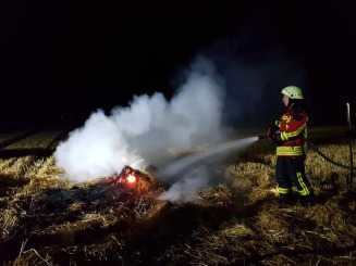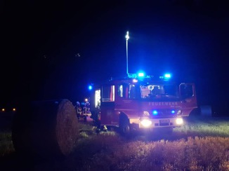 alarmiert da hier ein Strohlballen auf dem Feld brannte.
