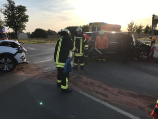 Verkehrsunfall 3 Verletzte, auslaufende Betriebsstoffe.