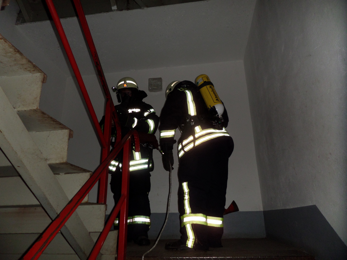Im Vordergrund der Übung stand die Einsatzdokumentation, sowie die Atemschutzüberwachung und die Lageerkundung der Gruppenführer.